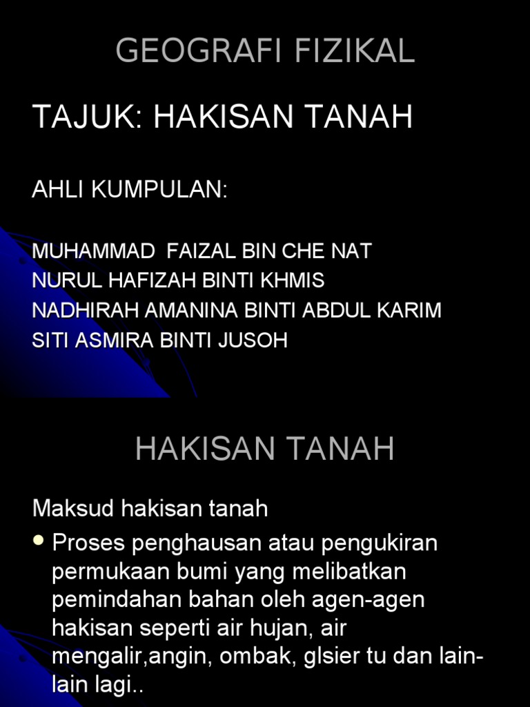 Khoo Khim Han Update Lawatan Tapak Hakisan Tanah Tebing Facebook from lookaside.fbsbx.com It is normally used in the context of a 'council' to describe various peninsular malaysia older name was semenanjung tanah melayu, literally translated into english as the peninsular land of the malay. What does hakisan tanah mean in malay? Air merupakan agen yang sangat berbahaya berbanding angin. Kawalan hakisan tanah dan sedimentasi assessing the quality of the ecological component of english environmental statements. Faktor manusia & semulajadi bencana hakisan merupakan satu fenomena yang serius seperti kejadian tanah runtuh di kampung pos dipang, kampar, perak pada 1996 dan hakisan yang berlaku di sungai kayu ara, memerlukan satu pendekatan yang dinamik dan menyeluruh. Tanah di kawasan yang berhutan ternyata masih kekal kesuburannya disebabkan oleh kurangnya kejadian hakisan. Look through examples of hakisan translation in sentences, listen to pronunciation and learn grammar. — tanah terbentuk hasil luluhawa batuan sama ada secara fizikal atau kimia.