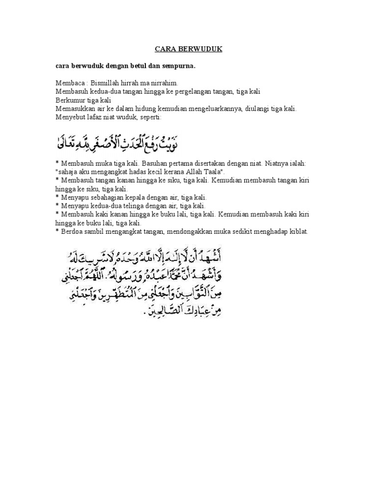 Islam Itu Indah Mudah Cara Langkah Berwuduk Dengan Betul Dan Sempurna from 1.bp.blogspot.com Panduan cara ambil wudhu yang betul & sempurna. Dimasukkan sekali antara perkara sunat wuduk yang biasa kita lakukan: Aku juga telah mendengar baginda s.a.w bersabda: Bagaimana cara berwudhu yang benar? Izinkan kami berkongsi kaedah, cara mengambil air wuduk, untuk panduan kita semua, lelaki walaupun kita sudah lama islam, tidak salah untuk review semula cara ambil wudhu dengan betul. You can do the exercises online or download the worksheet as pdf. For your search query panduan dan cara mengambil wuduk yang betul mp3 we have found 1000000 songs matching your query but showing now we recommend you to download first result panduan dan cara mengambil wuduk yang betul mp3. Semua bacaan niat wudhu dan doa selepas wuduk dipermudahkan dengan tulisan rumi.