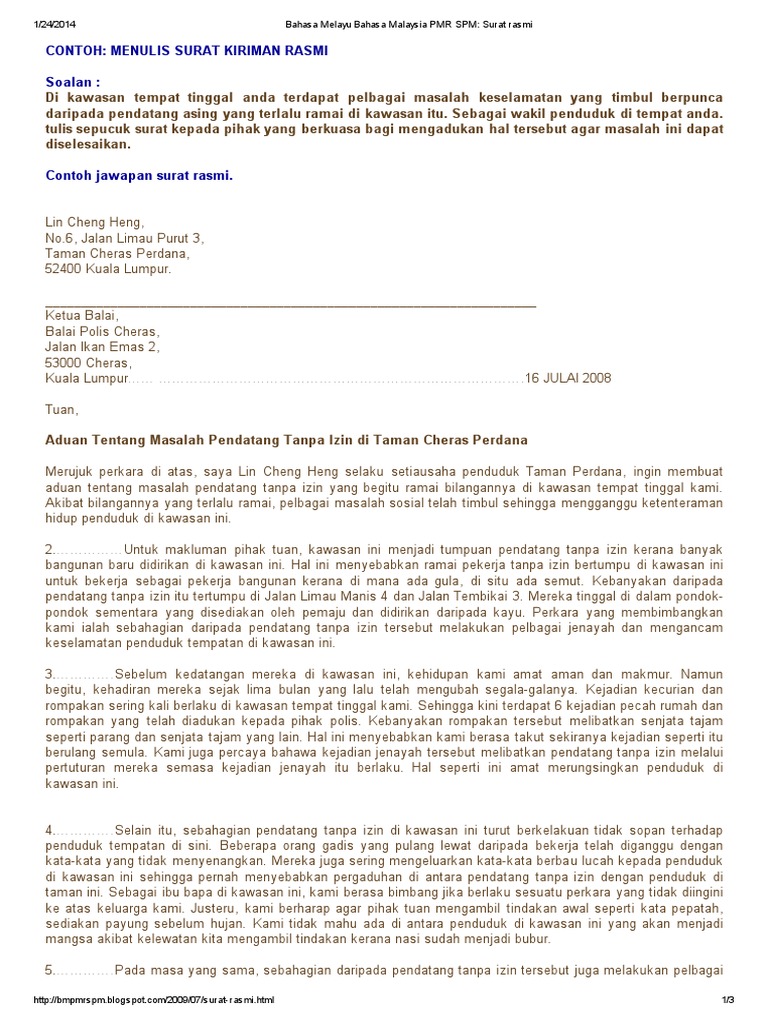 Surat Rasmi Bahasa Melayu - Pembukaan surat yasin, pembuatan surat, pembuatan surat gugatan, pembukaan suatu presentasi, contoh surat resmi sekolah yang baik dan benar via 8 contoh surat resmi lengkap (sekolah, perusahaan via www.sijai.com.. 7 bahasa surat bahasa baku ejaan pemakaian kata / diksi bentuk kata (imbuhan) kalimat. Cara penulisan surat resmi dalam bahasa arab/ طريقة كتابة via morsomber.wordpress.com. 25+ contoh surat lamaran kerja yang baik dan benar [+doc via. Surat merupakan suatu alat komunikasi secara tertulis untuk menyampaikan pesan dari orang yang satu ke orang yang lain. Masjid sungai sekamat kajang selangor: