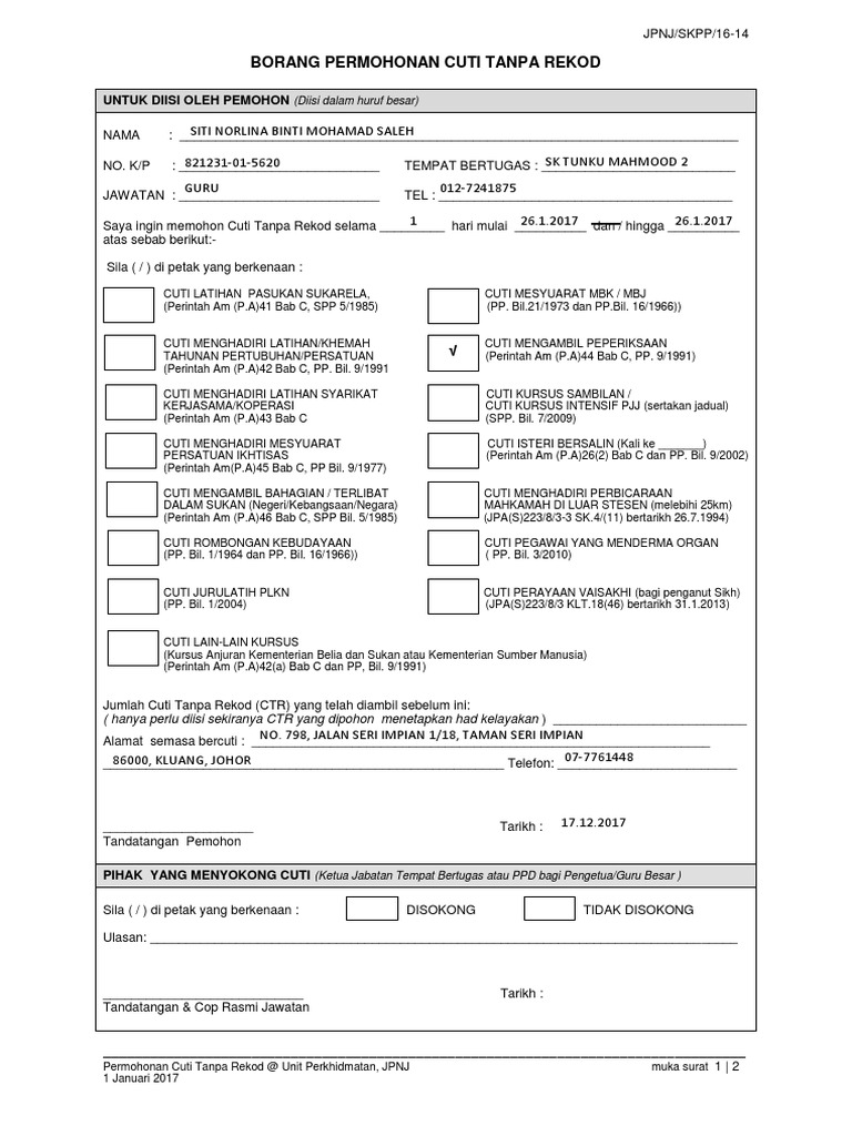 Borang cuti tanpa rekod untuk menduduki peperiksaan. The collection that comprising chosen picture and the best among others. For more information and source,. Borang cuti tanpa gaji guru. Borang kemas kini ogos 2017 1 borang permohonan cuti tanpa rekod (ctr) bagi urusan kematian ahli keluarga terdekat (pekeliling perkhidmatan bilangan 4 tahun 2015) arahan: